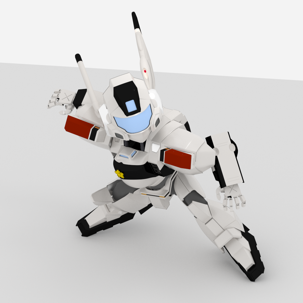 間接照明が作用しているので見た目は悪くないです。ただし、現在トップページに載せているイメージが通常レンダリングなのですべてのロボットをCyclesにしないとならなくなるのでこれは一旦保留かなと。