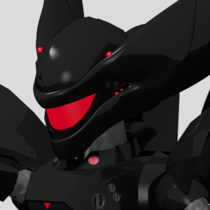 まずは、顔。フェイスガードと耳の部分に「サブサーフ」というポリゴンを増やしてマテリアルを細かくする設定を使用しているので輪郭がなめらかになっています。頭部の上の部分を見ていただけるとよくわかります。